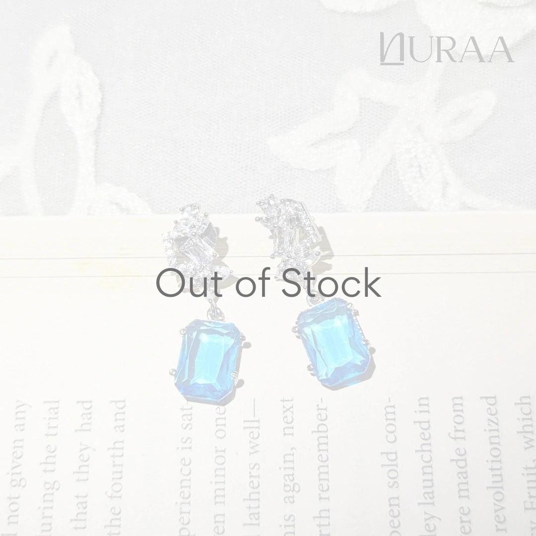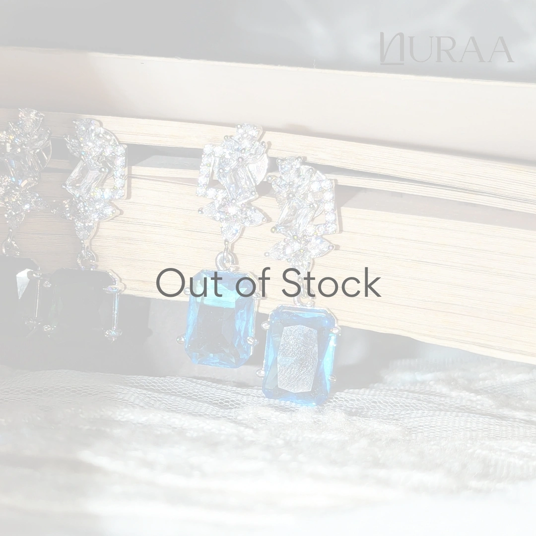 A luxe blend of sparkle and sophistication — the Timeless Prism Earrings by Nuraa, are crafted to make every look unforgettable. The earrings feature a shimmering cluster of high-grade American diamonds paired with a bold emerald-cut coloured stone that steals the spotlight effortlessly.
