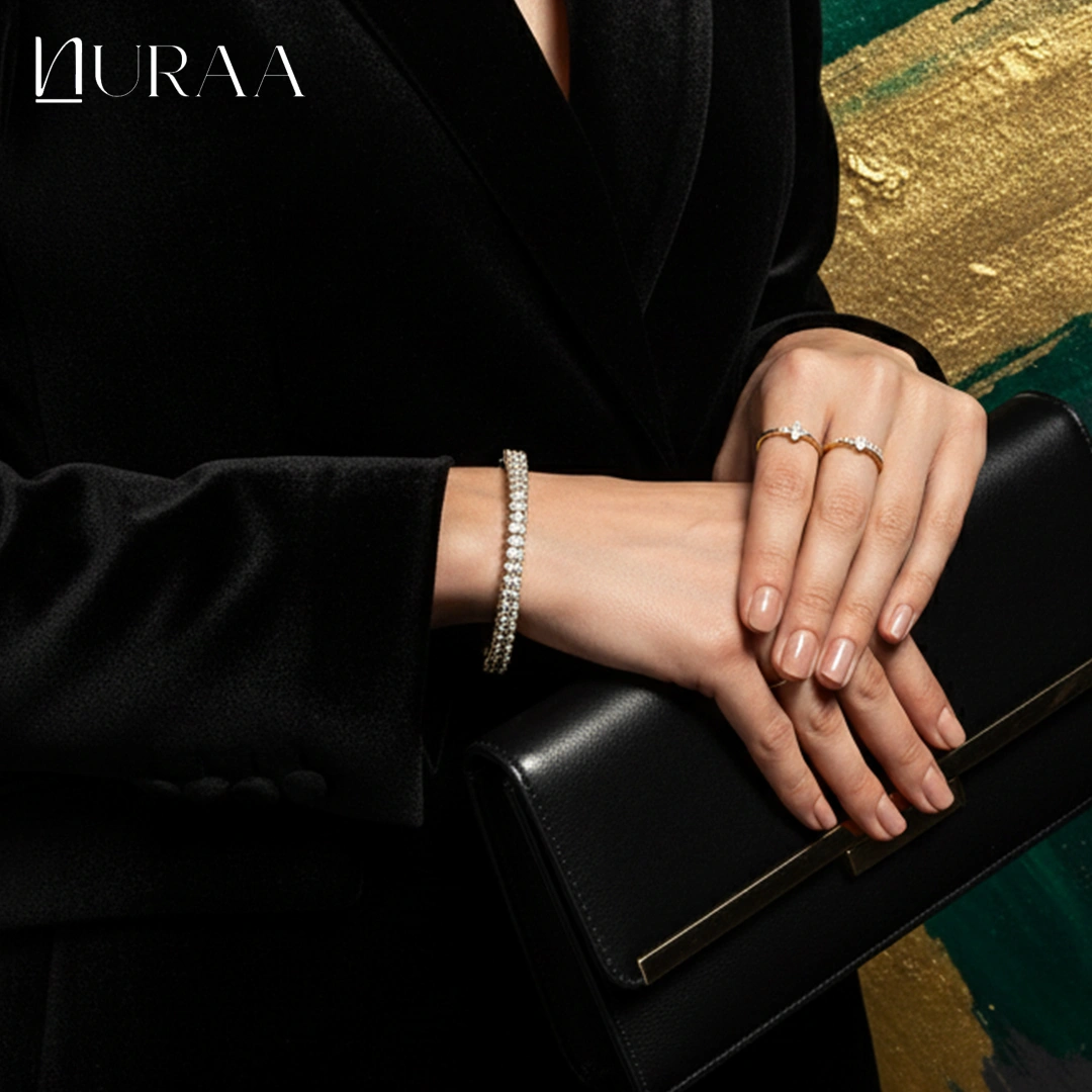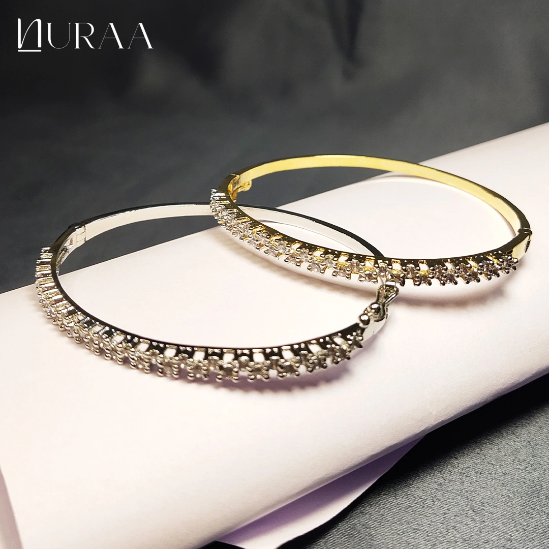 Add a touch of classic sophistication with the Twin Shine Classic Bracelet by NURAA. Beautifully crafted with two sleek rows of sparkling zircons, this bracelet radiates elegance from every angle. Its minimal yet luxurious design makes it a versatile piece — ideal for festive looks, office wear, or evening outings. Available in Rhodium Silver and Gold Polish, it complements any outfit with effortless grace and shine.